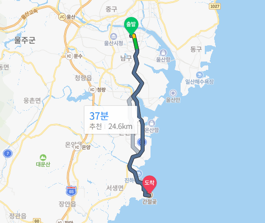 울산 시내하고 무려 25km나 떨어져있다.. 물론 대중교통을 타고가진 않을꺼고 이따가 그린카를 빌릴 것이다.