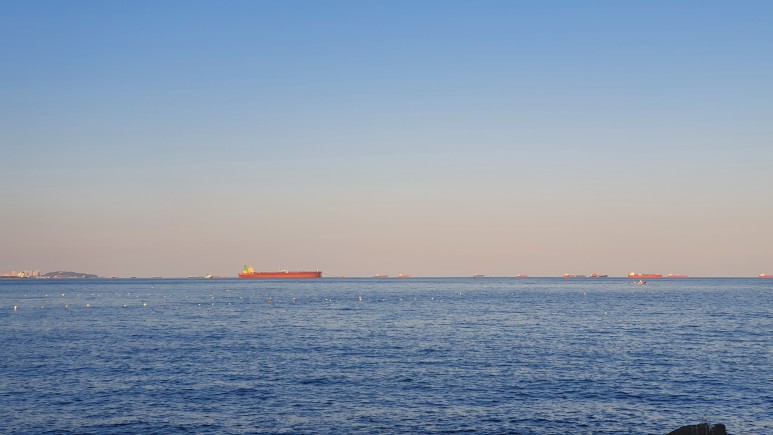 커다란 배들이 뭐하는진 모르겠지만 둥둥 떠있었다.