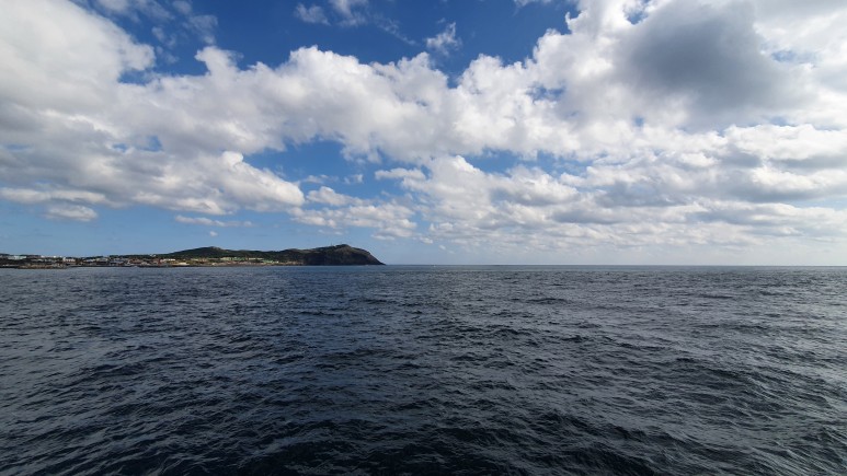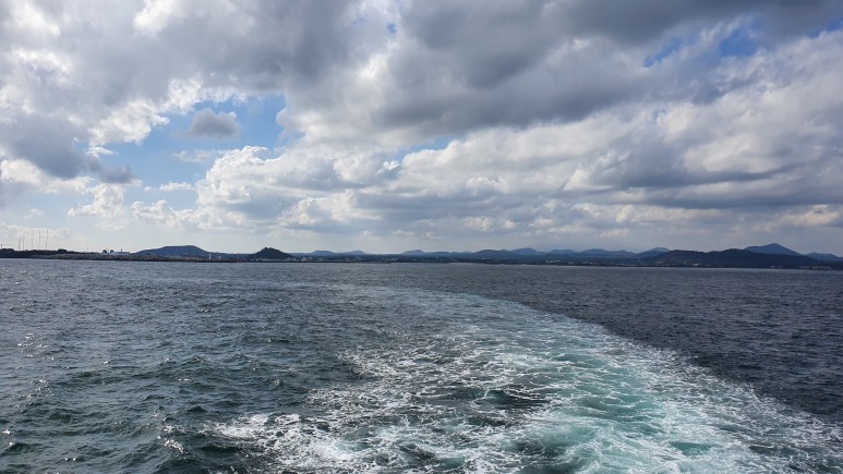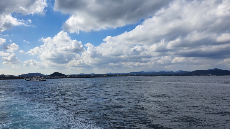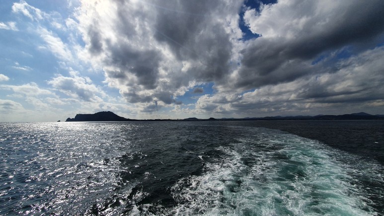 우리가 떠나온 성산항이 작게 보이고 있다.