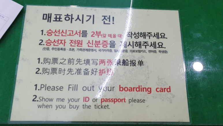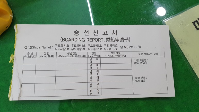 승선시에는 승선신고서 올때 갈때 2부, 그리고 신분증이 필요하다!
