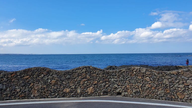우도 하영이라는 음식점 앞에 이렇게 멋진 돌담이 있었다. 사람들 다 여기서 사진찍길래 우리도 시간내서 사진을 찍었다. 여기서 밥도 먹을라햇는데 웨이팅이 무슨 한시간이 넘는다해서 바로 패스했다.