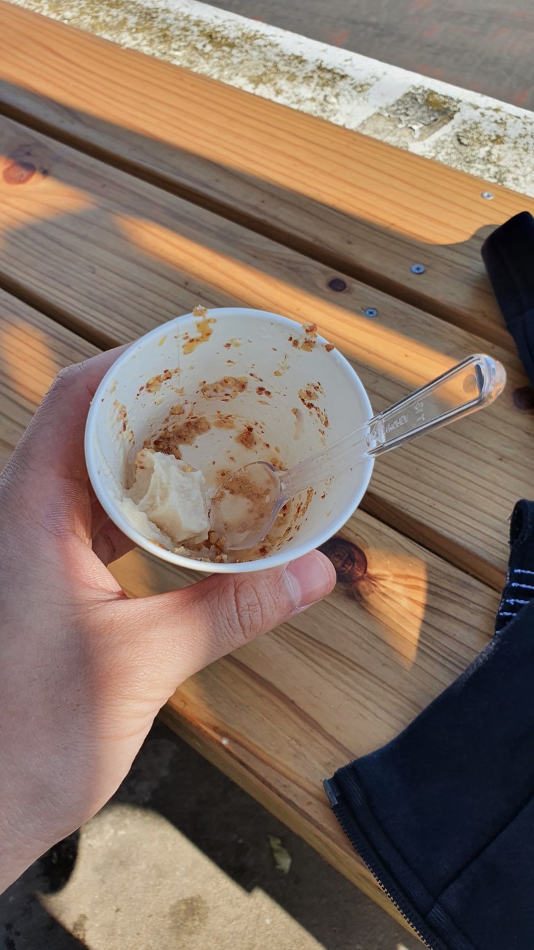 메인 음식을 시키고 우도 명물인 땅콩아이스크림을 먹었는데 뭐.. 왜 섞어놓았는지 모르겠는 맛이었다.. 땅콩이랑.. 아이스크림 각각 따로 먹는게 더 좋다고 생각드는 맛.. 굳이 섞어서 더 맛있어지는 그런 효과는 없는 맛이었다 ㅋㅋ..