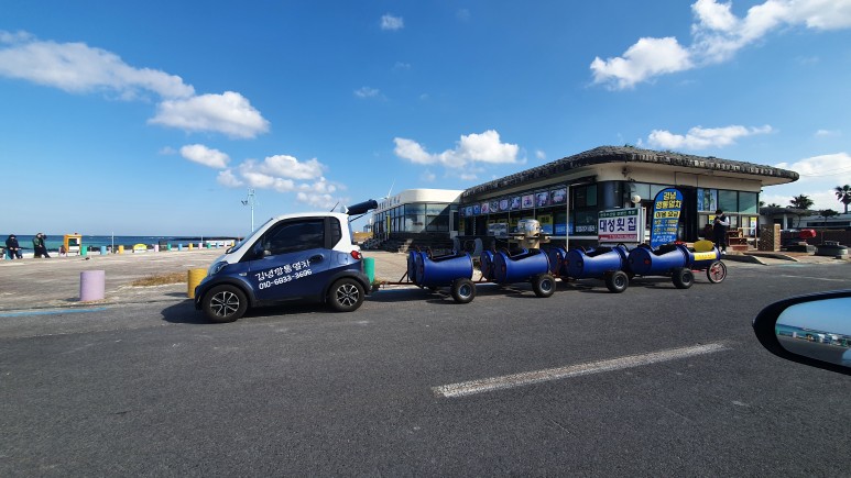 카페 델문도에서 바로 우도로 가기위해 출발! 중간에 저런 깡통열차가 있어 귀여워 찍어봤다 ㅎㅎ