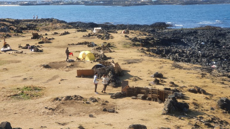 이 넓은 벌판에 덩그러니 놓여있는 텐트들