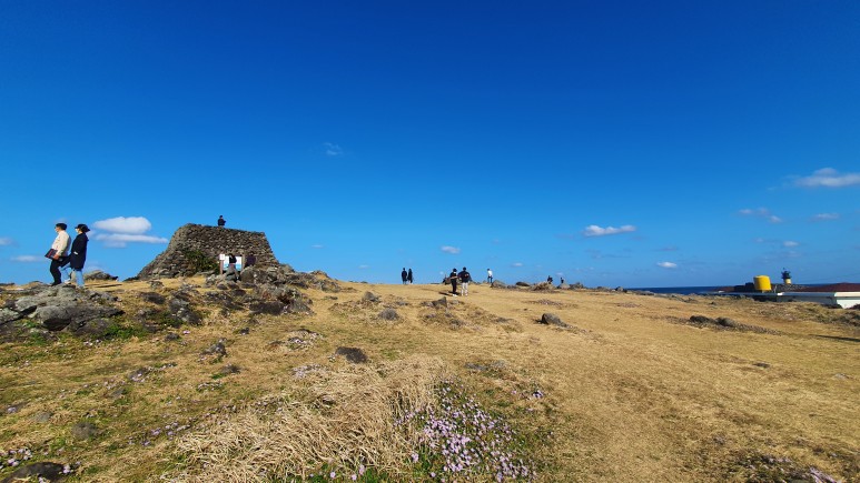 높지 않은 봉수대였지만 사진만 찍고 후딱 내려왔다. 저기 보이는 산?.. 이 우도등대공원 ㅋㅋ 이 작은 섬에서 우도를 보니 아주큰 섬으로 느껴진다.