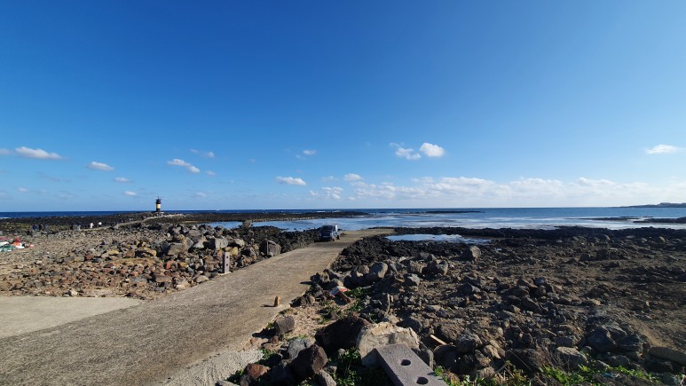우도를 거의 한바퀴 둘러봤을 때 쯤인가, 어느새 비양도로 가는 길에 이르렀다.