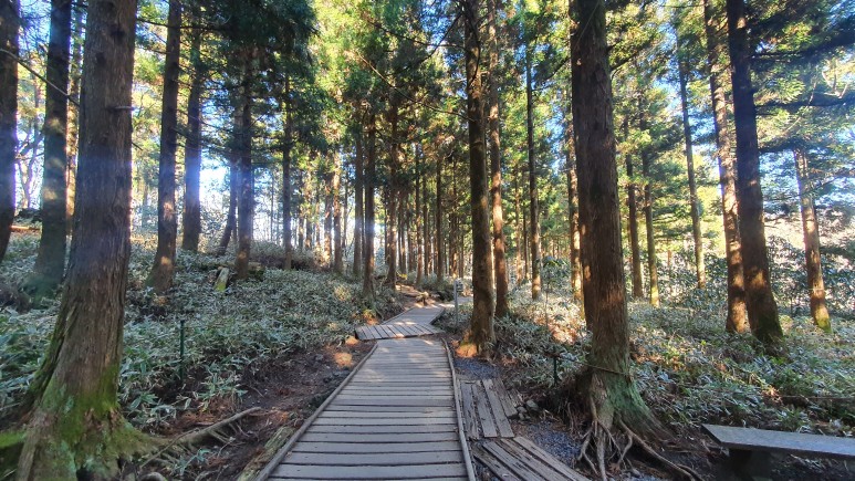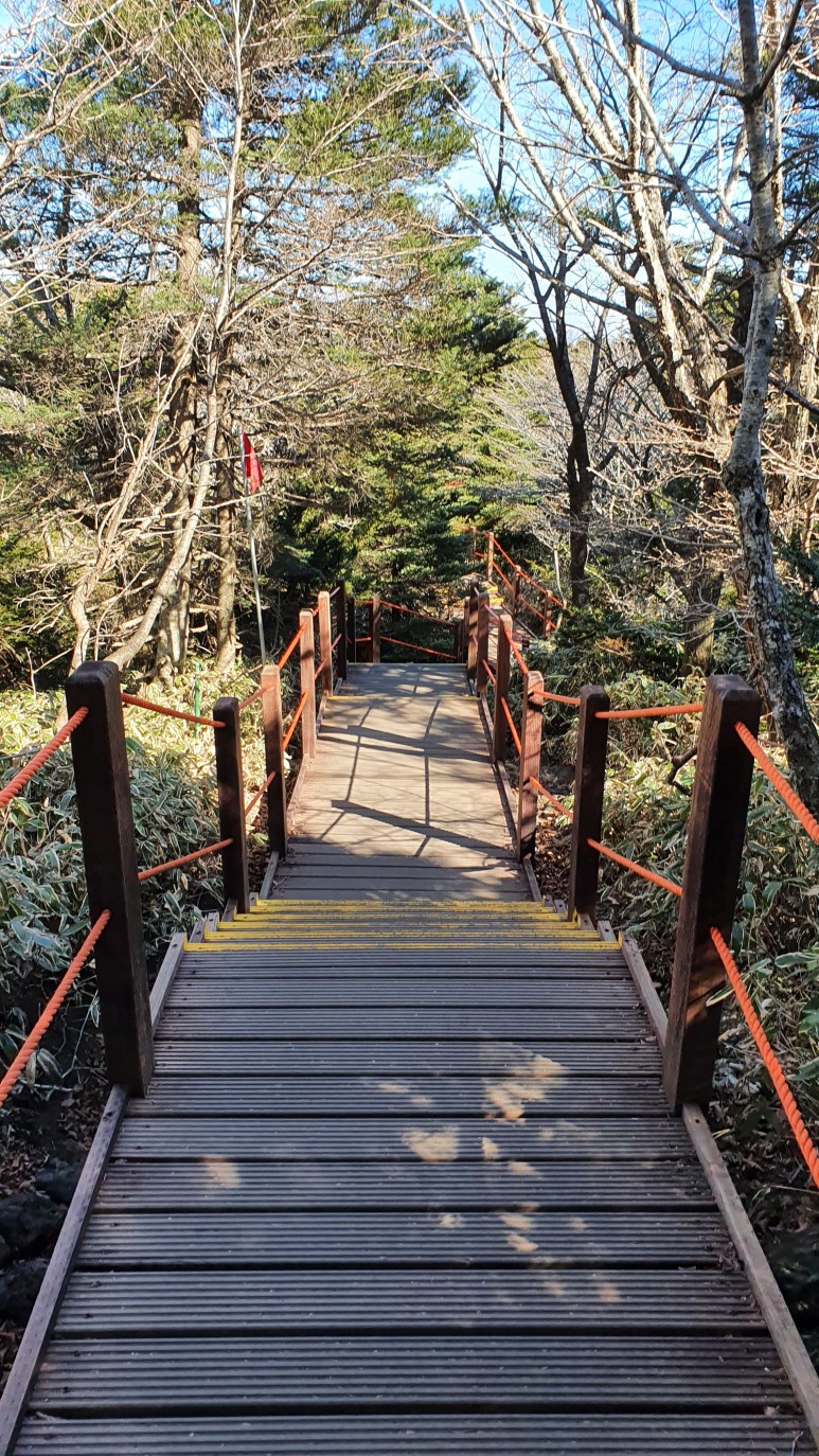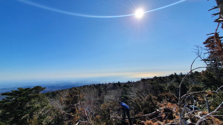 나무 너머로 뒤를 보니 어느정도 올라온 것 같았다 한 1400미터 정도 올라온걸까?