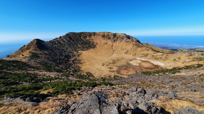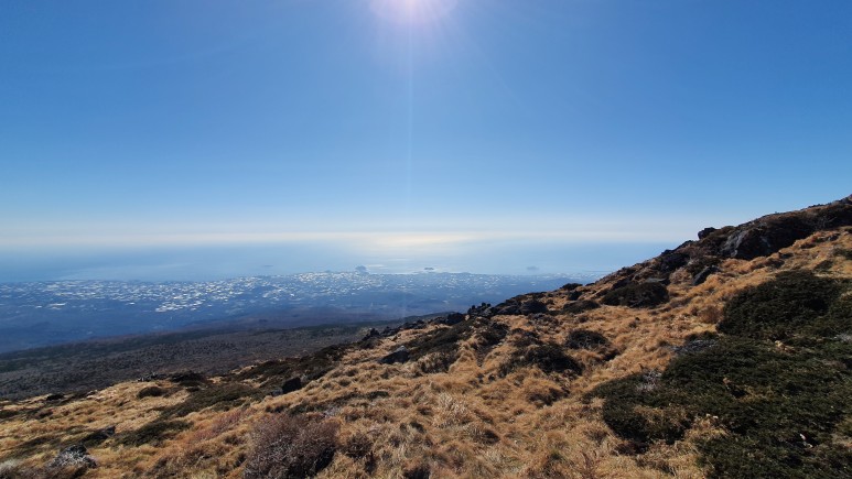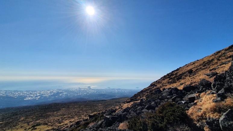 오.. 제주도에오면 항상 백록담쪽은 구름으로 가려져있었는데 오늘은 구름한점이 없다. 이런날이 얼마나 있을까