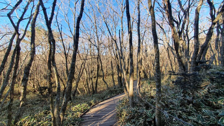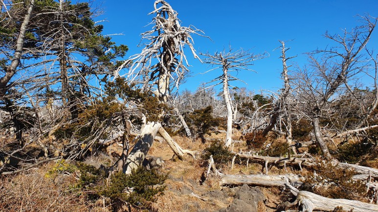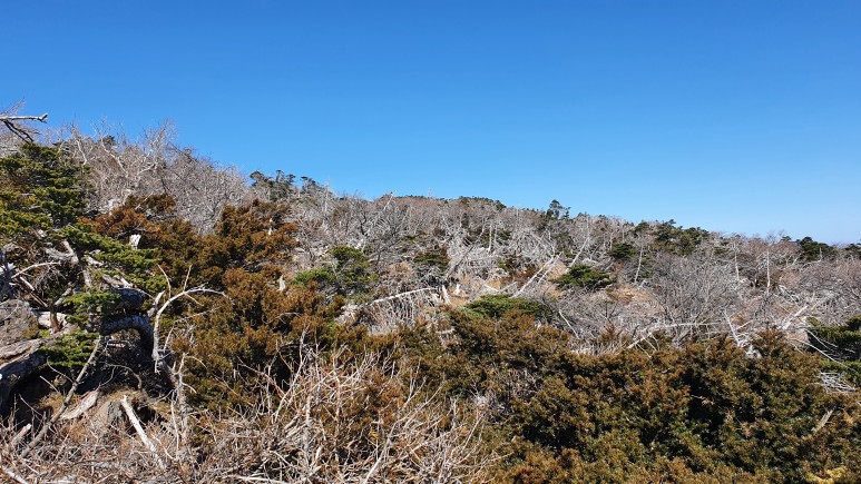 해발 1000~1200미터 사이에 있는 식생. 내륙에 있는 산과는 많이 다른 모습이다.