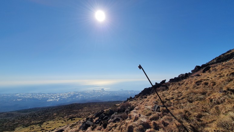 오 이건 뭔가 느낌이있어서 찍어봤다 ㅋㅋㅋ 멀리보이는 해안선과 태양 그리고 기울어진 이정표가 뭔가 에베레스트를 오르고 있는 느낌을 주었다