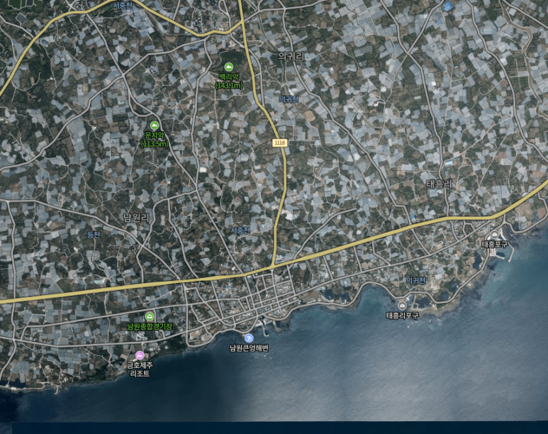 위성지도로 확대해보니 비닐하우스였다..ㄷㄷ