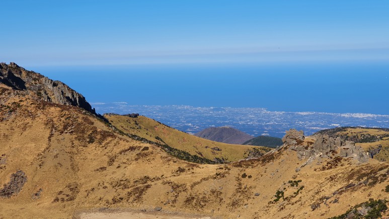 관음사 코스로 살짝 걸어보니 뒤편으로 제주시쪽 시가지 모습이 나온다.