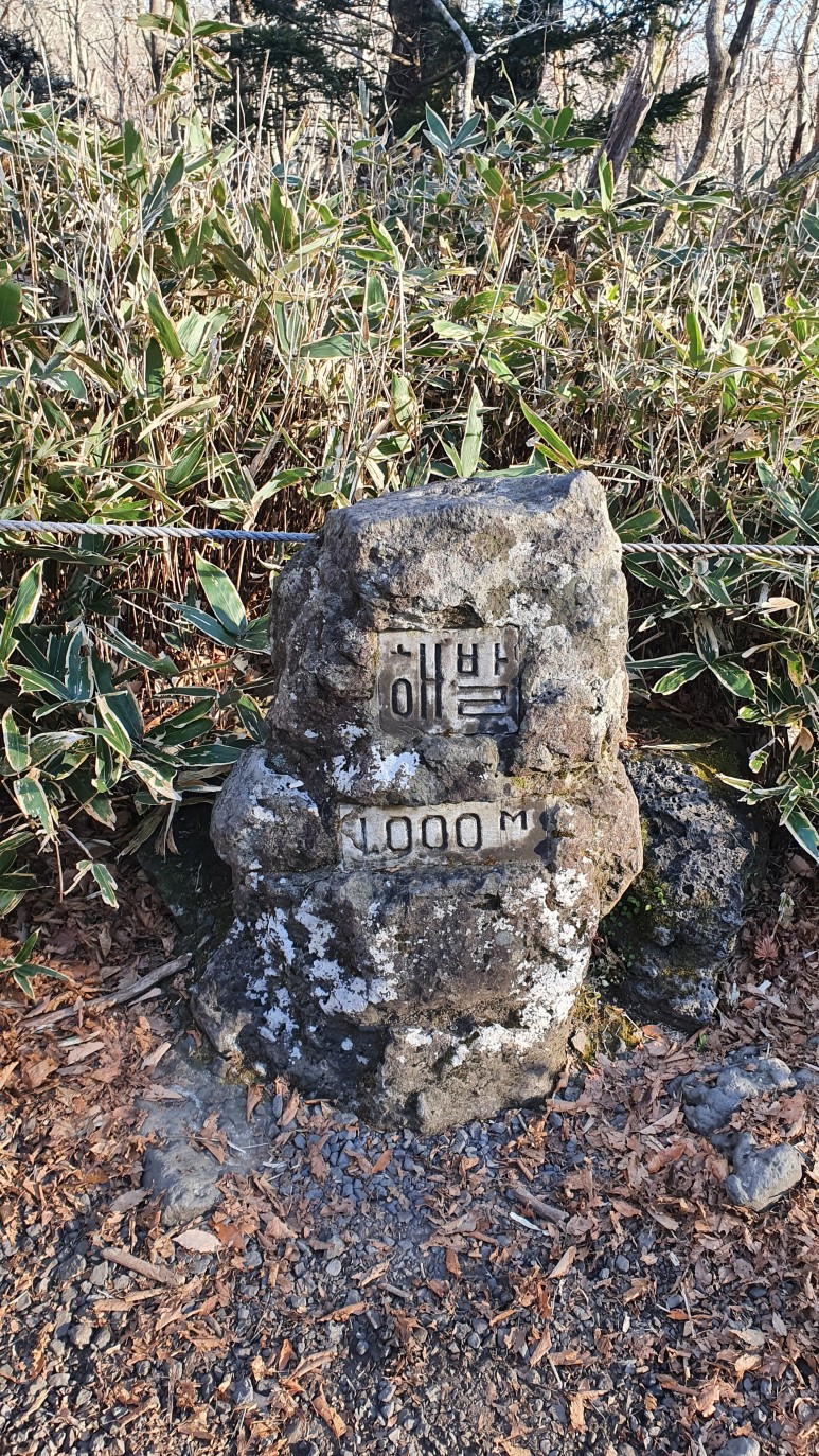몇 발자국 걸으니 바로 해발1000미터 도착.. 아마 성판악에 도착하면 해발 800미터 언저리부터 시작한다.