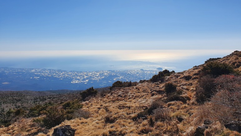 뒤 돌떄마다 장관이 펼쳐진다. 저기 보이는쪽이 표선, 위미쪽. 저 빛나는 곳은 뭘까..?