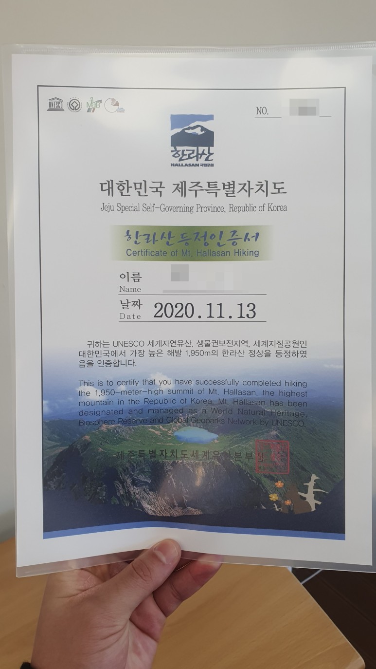 #제주도 #여행 #성판악 #코스 #한라산 #백록담 #등반 #등산 #왕복 #시간 #구름 #없는날 #인증서