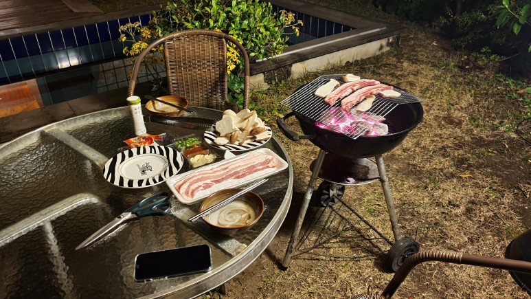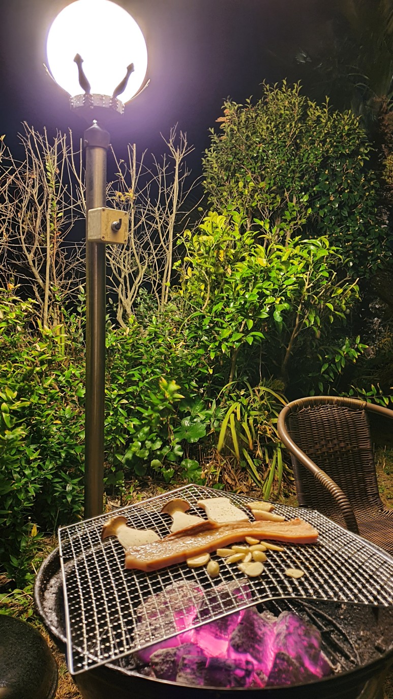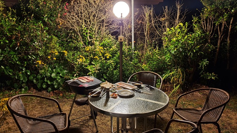 밤에 이렇게 정원에서 먹어보는것은 좋은 경험이었다. 물론 밤에 좀 쌀쌀했기 때문에 옷은 충분히 입고 먹어야했다.