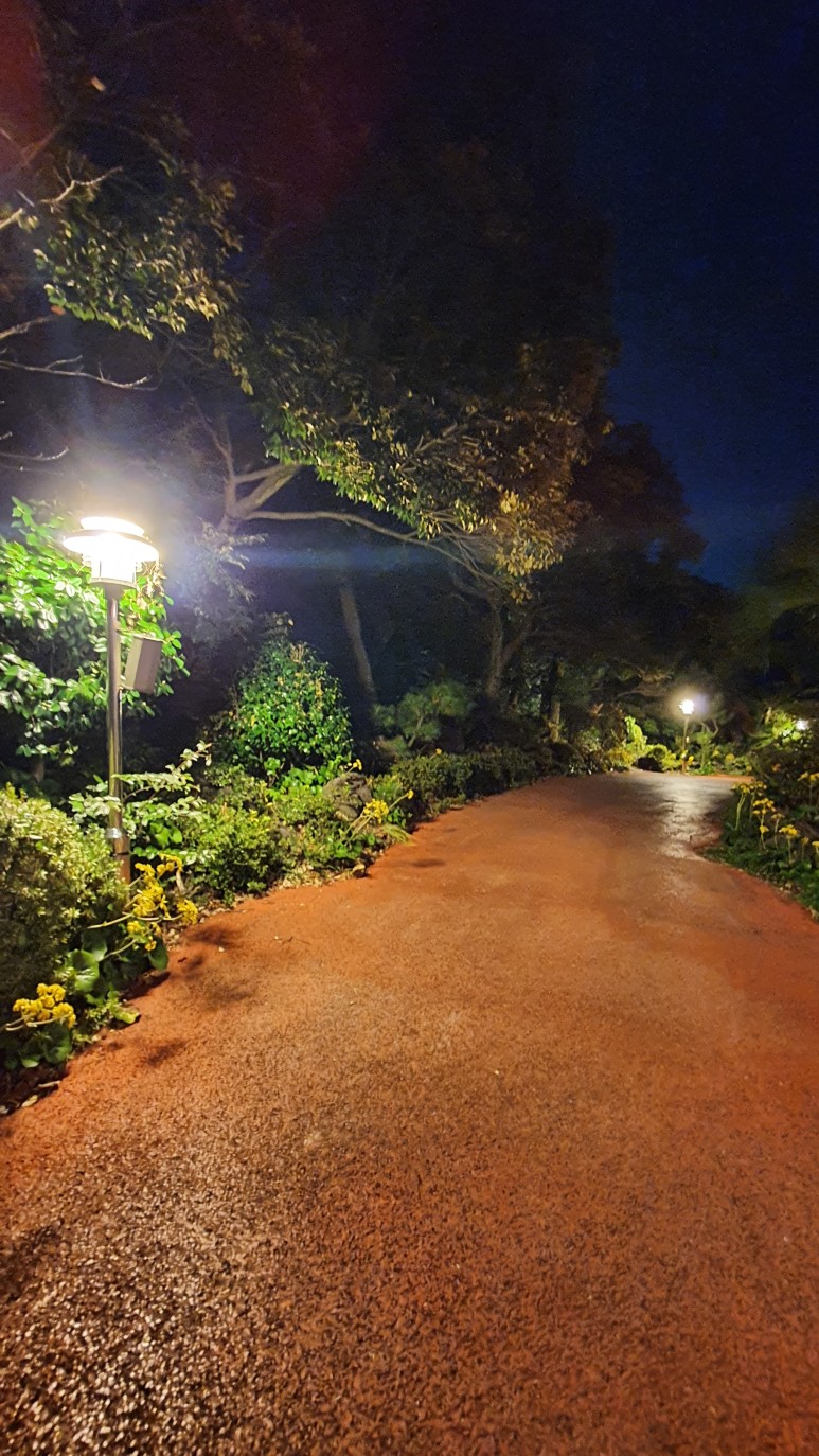 도착하니 프론트라고 해야하나..? 주차장에서 딱 리조트 입구로 들어가면 아저씨께서 체크인을 해주신다. 캐리어는 골프카트에 태워서 우리도 골프카트를 타고 우리 독채 펜션으로 이동한다. 리조트는 조경이 아주 이쁘게 잘 되어 있다.