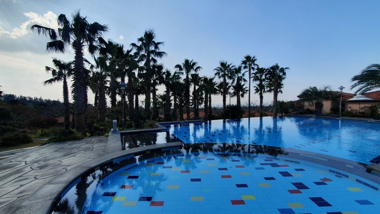 수영장은 물론 온수가 아니다. 냉수였고 미관상 좋아보이려고 하는것인지 모르겠지만 매일 새물을 받아놓는것 같았다. 보니까 아침에 와서 빼더라. ㅋㅋ 근데 수영장 물위에 곤충들이 많이 떨어져있었다.