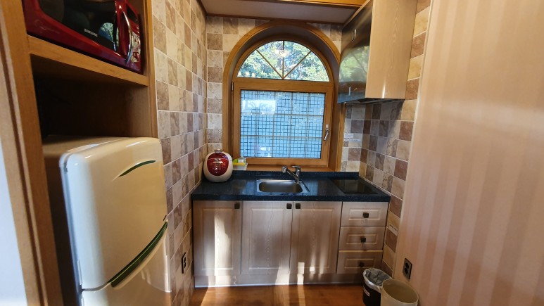 주방에 있을껀 다있다. 각종 도구, 접시, 그리고 전자레인지도 있어서 좋았고 냉장고도 큼지막 하다. 뭐 부족한건 없던것 같다.