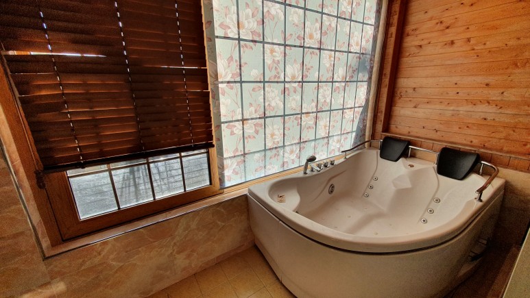 요기가 스파욕조다. 입욕제는 사용이 안된다고 한다. 그리고 커튼을 열면 옆집이 보여서 열진 못 했다.