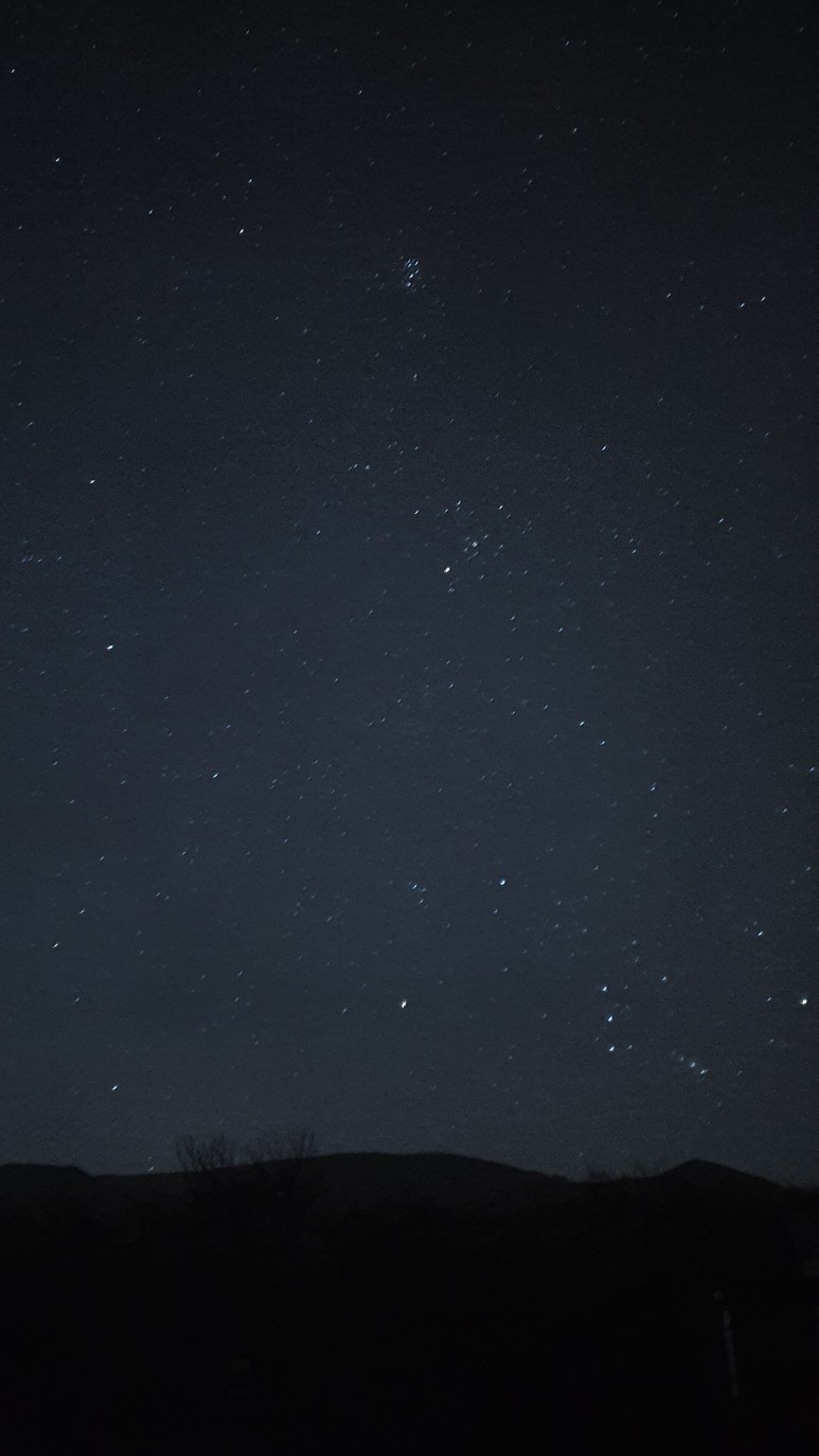 처음찍은 야간사진. 음... 별이 나오는건지 안나오는건지.. 예전에 몽골갔을 때 DSLR로 조리개 열고 찍으면 은하수까지 다 찍혔었는데 카메라 성능에 실망했다. 내 폰은 갤럭시 S10 5G 모델이다.