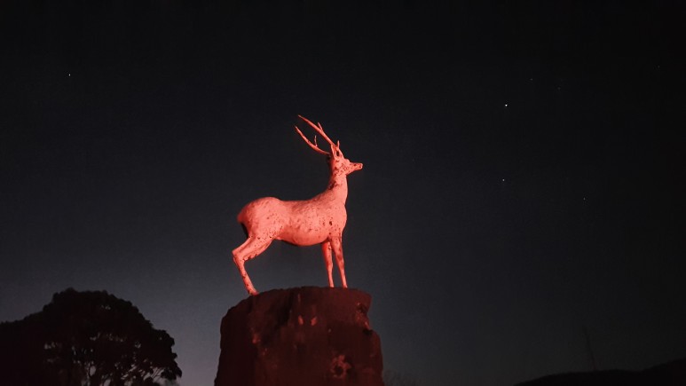 사진은 사슴이 빨갛게 나왔다. 보통 ㅋㅋ 여기가 칠흙같은 어둠속인데 주차장 차들의 브레이크등이 저렇게 사슴상을 붉게 물들인다.