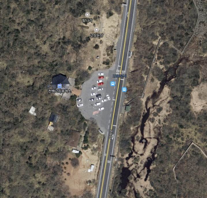 1100고지는 휴게소는 이렇게 생겼다. 주차 대수는 약 20대?.. 오는차가 그렇게 많지는 않아 야간에 가면 딱 적당한 차량수가 유지된다. 좌측에 천백고지 휴게소가 계단으로 올라가는 구조로 되어있는데 보통 거기서 별사진을 많이 찍고 북쪽에 고상돈상에서 사슴을 배경으로도 사진을 많이 찍으신다. 그리고 야간에 ㅋㅋㅋ.. 저 휴게소를 도착한다 하더라도 가로등이나 조명은 없다. 별사진 찍는 것을 배려하려고 한건진 모르겠는데 다들 휴대폰 후레시를 키고다닌다. 발 잘못 밟으면 넘어지니 조심해야한다. 칠흙같은 어둠이었기에 휴게소 사진은 없다..