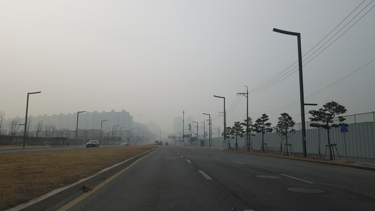 동탄 신도시를 지나갈쯤 찍었던 것 같다. 안개가 많이 자욱했다.