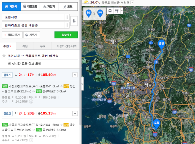 3월 5일 화요일 부대에서 자차를 타고 용인 한화 리조트로 출발했다. 무려 105km나 된다. 차가 연식이 있는지라 기름값도 편도 약 2.5만원 수준. 다행히 부대주변에 구리-포천간 고속도로가 있어서 빠르게 올 수 있었다.