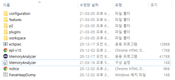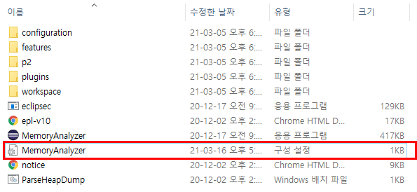 저기 보이는 MemoryAnalyzer.ini 를 열어보자.