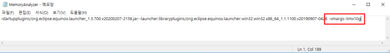 끝에 위 옵션을 추가해주자. 이 MAT 프로세스가 최대 10GB의 메모리를 점유하겠다는거다. 그리고 MAT 실행
