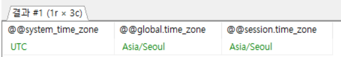 그리고나서 결과를 보면 일단 global, session의 time_zone이 Asia/Seoul로 바뀌었다.