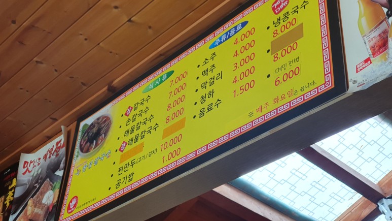 메뉴는 머 이렇다. 우린 찐만두 하나랑 장칼국수 두개를 시켰다.