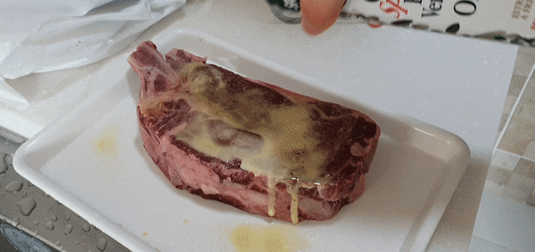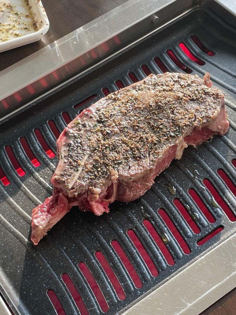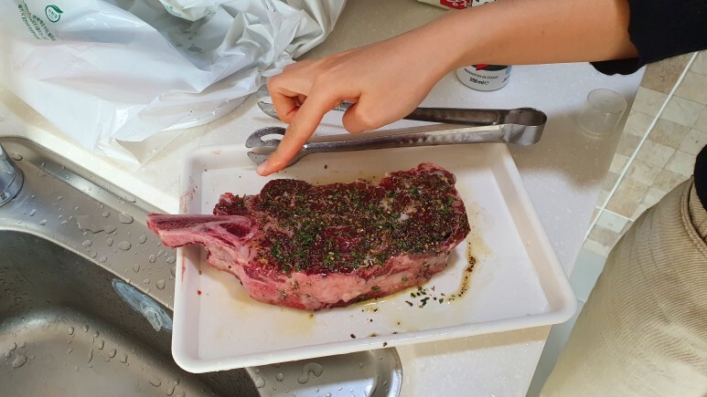 시즈닝 처리를 완료한 상태! 위 고기는 토마호크 스테이크다.