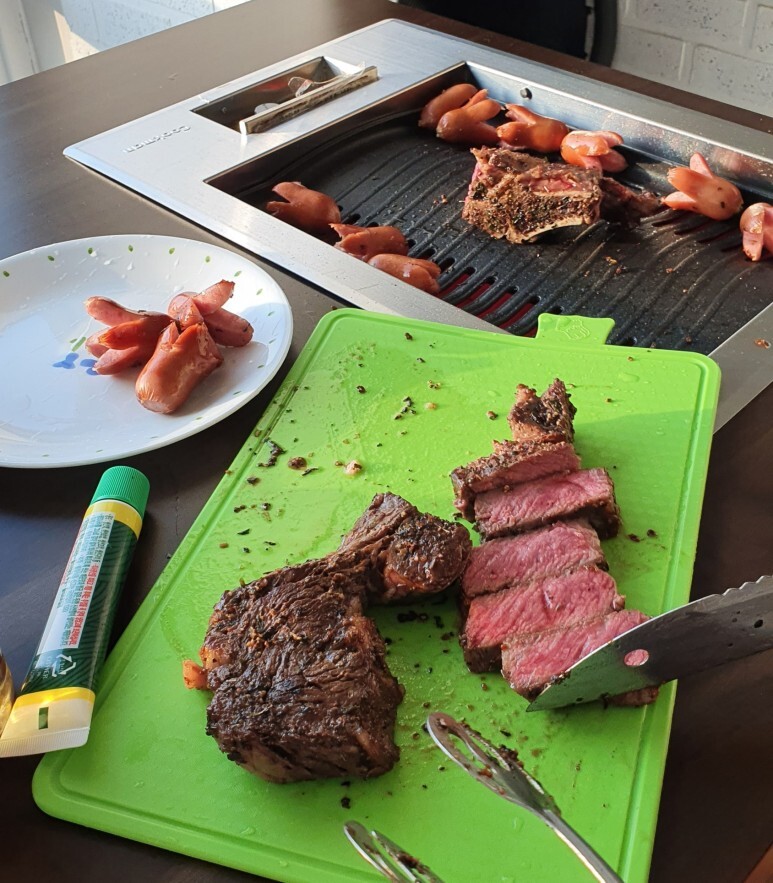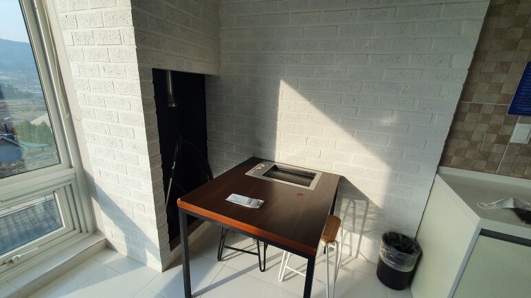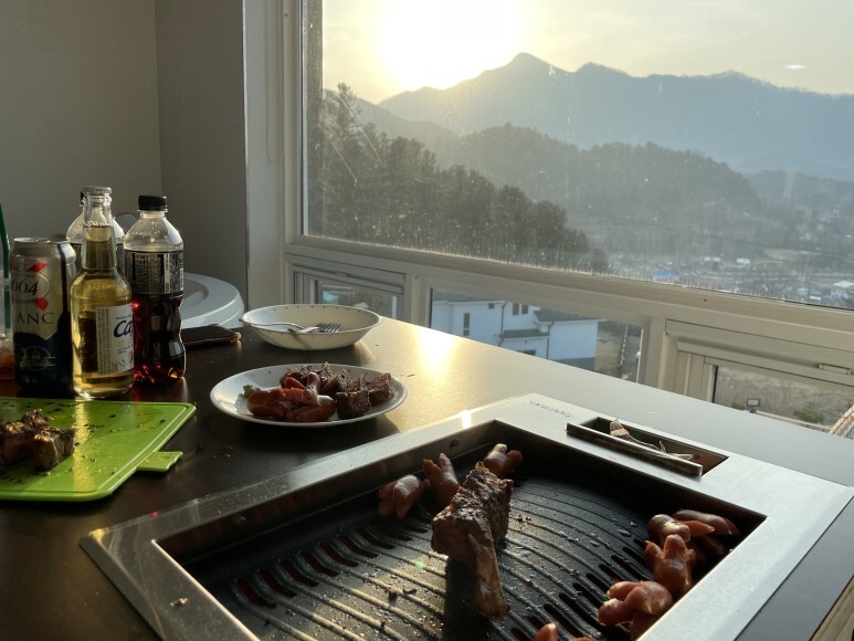 요기가 괜찮았던게 내부에 고기구워먹을 수 있는 시설이 있어서다 ㅎㅎ. 보통 펜션 고기구워먹으려면 그릴이랑 숯 비용해서 3만원정도 받고 1회 먹을 수 있는데 여기는 전기 그릴이 있어서 내가 먹고싶을때 계속 먹을 수 있었다.