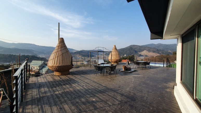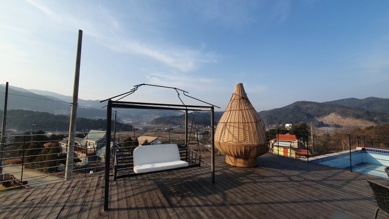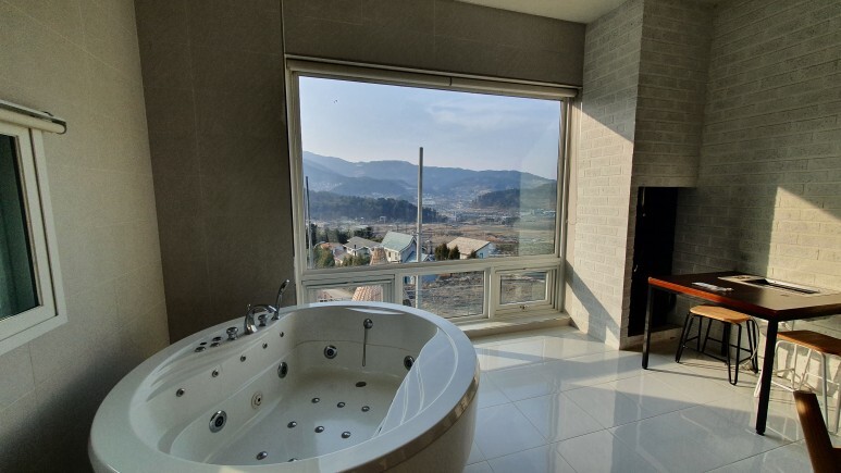 가평 펜션 알아보는데 의외로 내부 시설은 제일 괜찮았던거 같다. 일단 통창으로 되어있어서 좋았다. 근데 ㅋㅋ 창 밖 뷰가 구수한 농촌 뷰였던것도 신기했다.