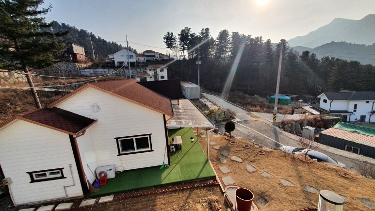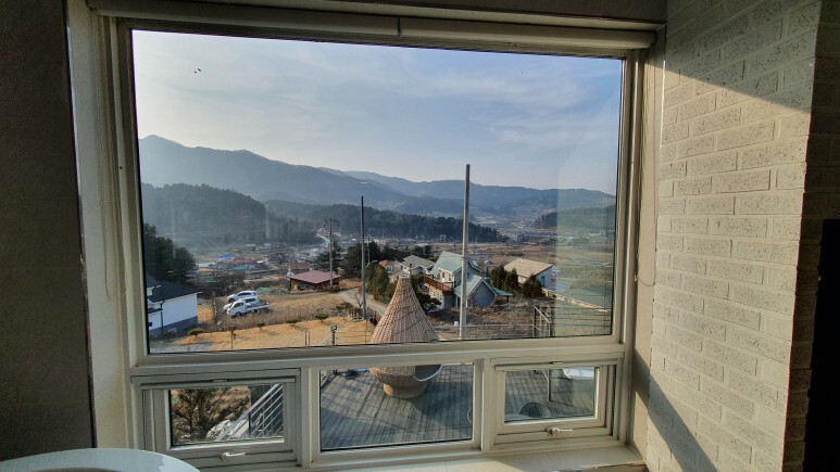 이게 바로 시골뷰 ㅎㅎ 신기하게도 여기 주변에 뭐가 아무것도 없는데도 주변에 펜션 건물들이 많이 있었다.