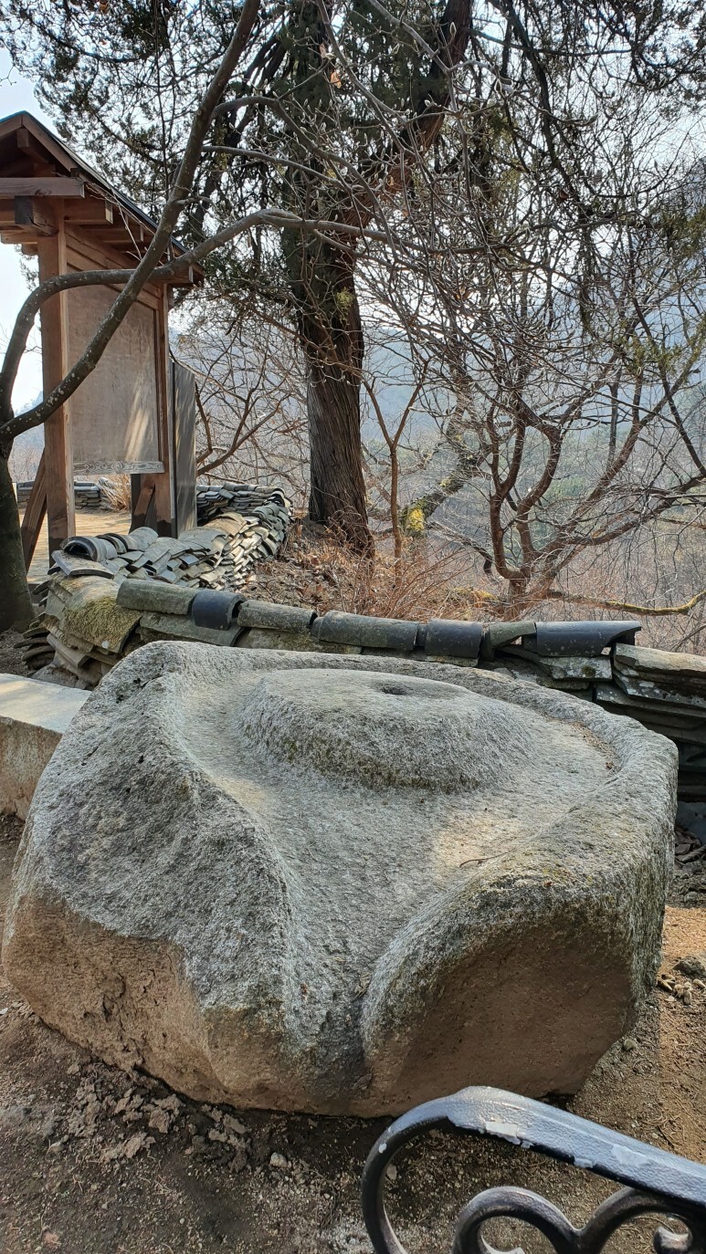 이건 멀까. 약수 물이 나오는건가. 아니면 맷돌의 일부인가.