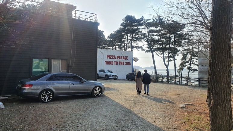 위에도 주차장이 있고 아래도 있지만, 나는 차 많은곳에 차대는 것을 싫어해서 굳이... 아래다 주차하고 걸어서 올라갔다. 요기서도 잠깐 보이지만, 가게 2층에 앉으면 바다 뷰가 보이는 피자집이다.