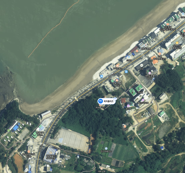 위치도 구봉도, 해솔길 트래킹 코스 바로 옆이라 갔다와서 밥먹으러 가기 딱이다. 위치를 보면 알겠지만 해수욕장 앞 고지대에 가게가 있기 때문에 음식점 뷰도 정말 좋다.