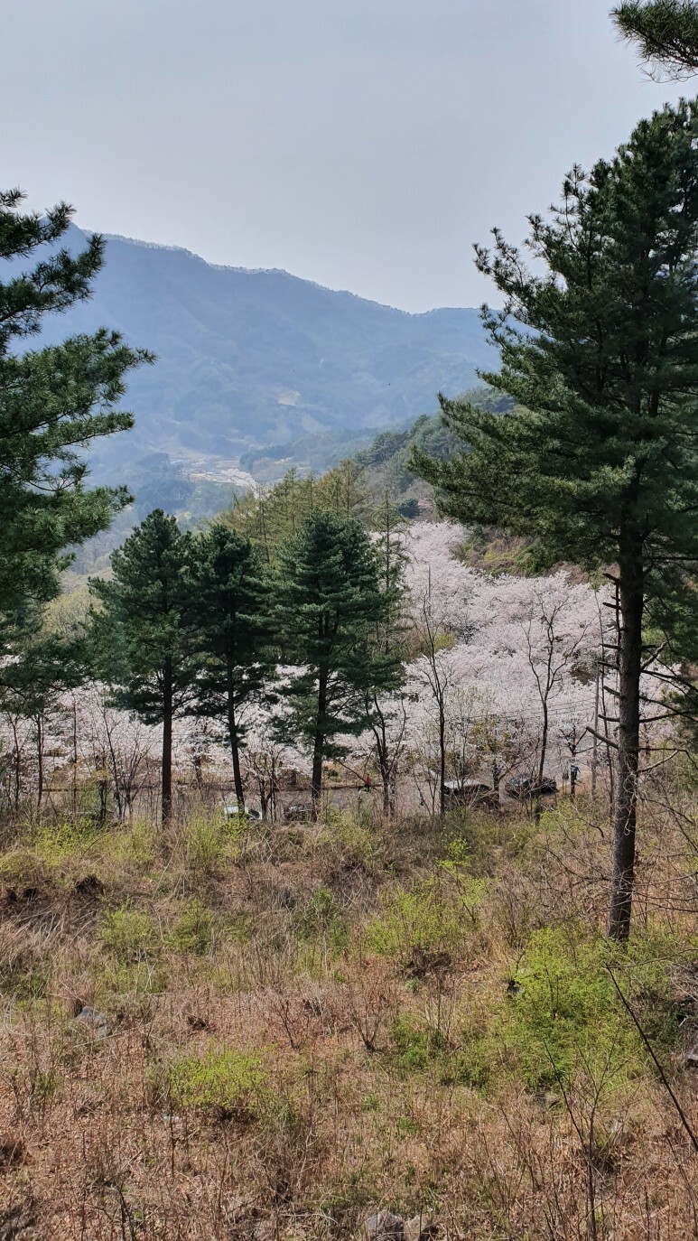 이건 다시 차로 올라와서 찍은 사진이다. 경사가 꽤 된다. 이 시간 되니 중간중간 빈 자리도 보이기 시작했다. 음.. 여기 사람 많이 없었으면 좋았을텐데. 너무 복잡하고 위험하다. 차라리 서울 시민이면 안산이나 불광천 벚꽃축제 가시길.. 이거 하나 보러오긴 수지타산이 안맞는다고 생각 됨.