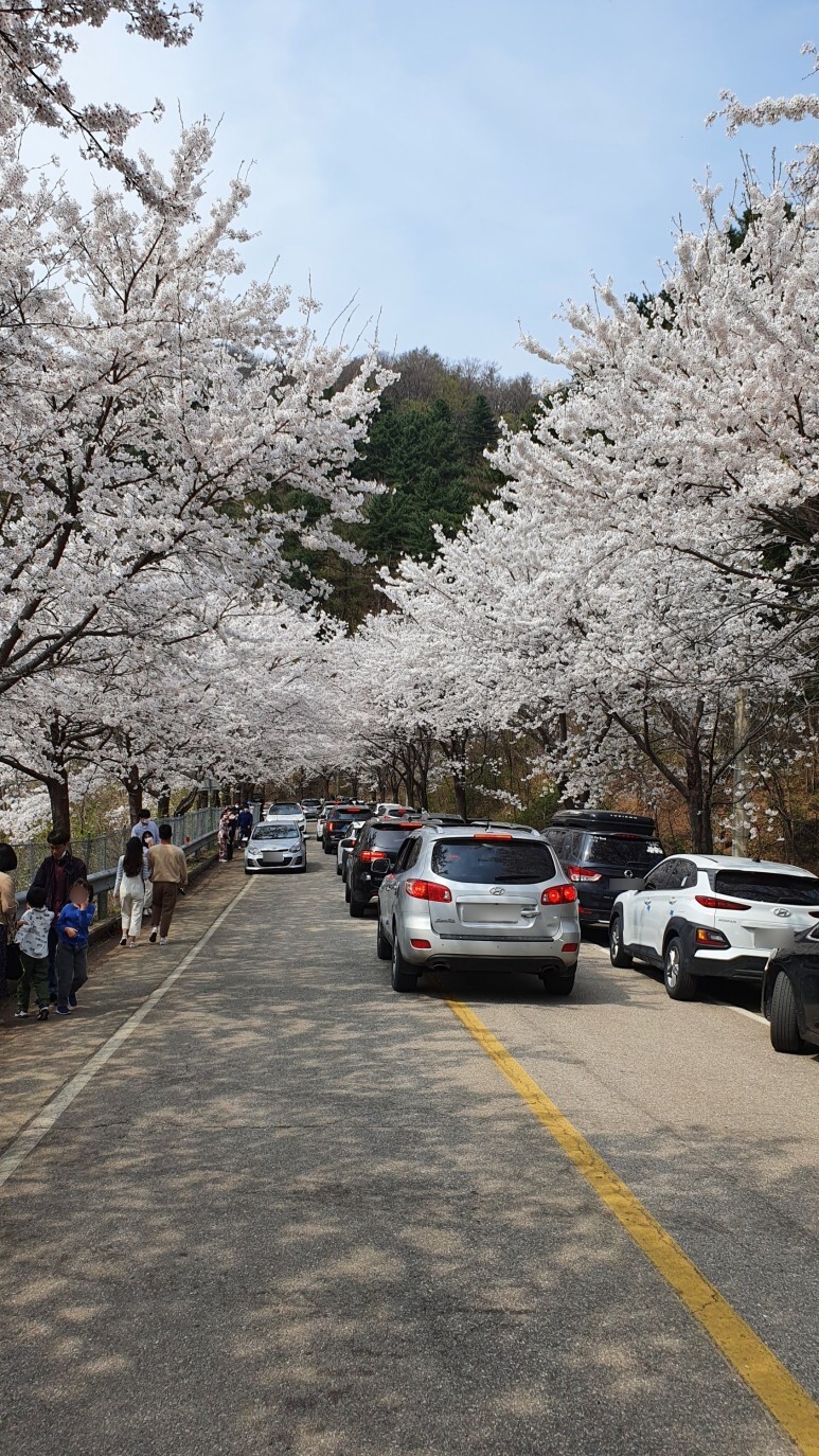 네비에는 부귀고개라고 찍고가면 된다. 만약 이거 조회안되는 네비에는 "부귀리 115-7"을 찍고 가면 된다. 주차는 모두 갓길에 겨우겨우 주차한다. 정식 주차장이 있지는 않다. 북악스카이웨이 갓길 불법주차마냥 난잡하다. 지자체에서도 벚꽃축제 한다고 현수막 걸려있는거보면 인파 몰릴거 이미 인지하고 있었단건데 주차 대책도 같이 새워줬으면 더 좋았었을 것 같다 ㅋㅋ..
