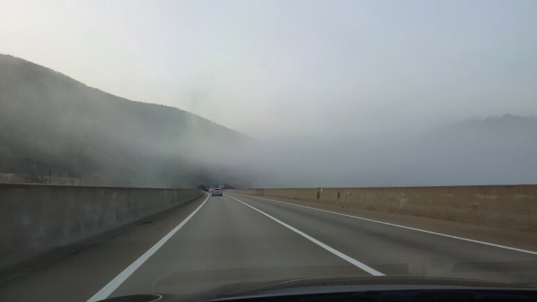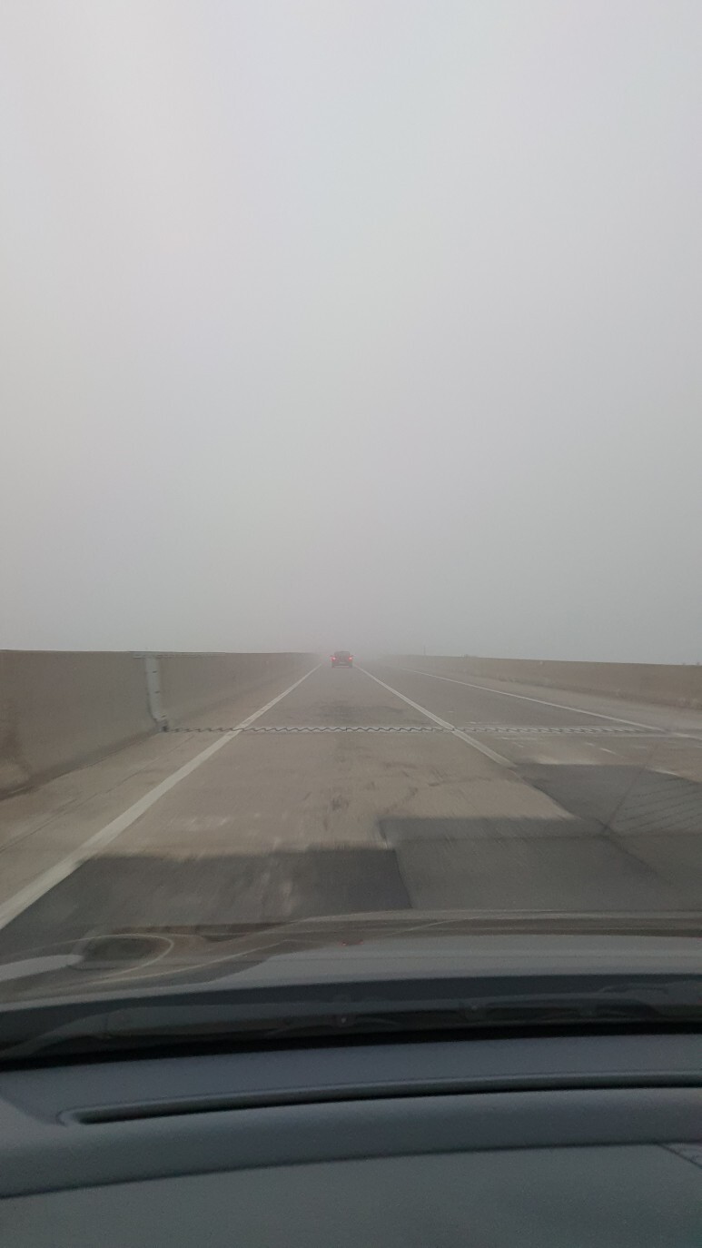 중간에 안개가 너무심해서 다들 비상등을 키고 거북이처럼 이동했다.