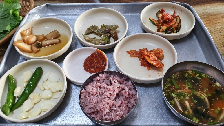 밑반찬은 꽤나 다양하게 나오는데 난 편식이 심해서 쌈장하고 밥밖에 안먹었다..;;ㅋㅋㅋ