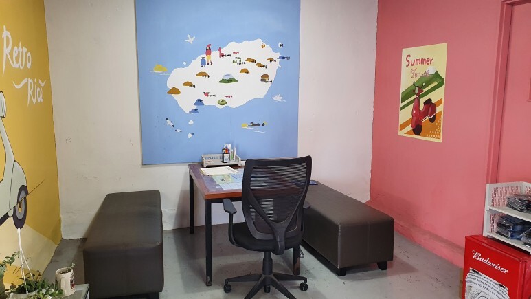 ㅋㅋㅋ직접 페인트 사서 칠한건지 연노란색으로 깔맞춤이 되어있다. 오토바이는 밖에도 있고 안에도 주차되어있었다. 간판에 있는 일러스트들은 한글97 그림상자에서 가져온듯한 이미지라 놀랐다.