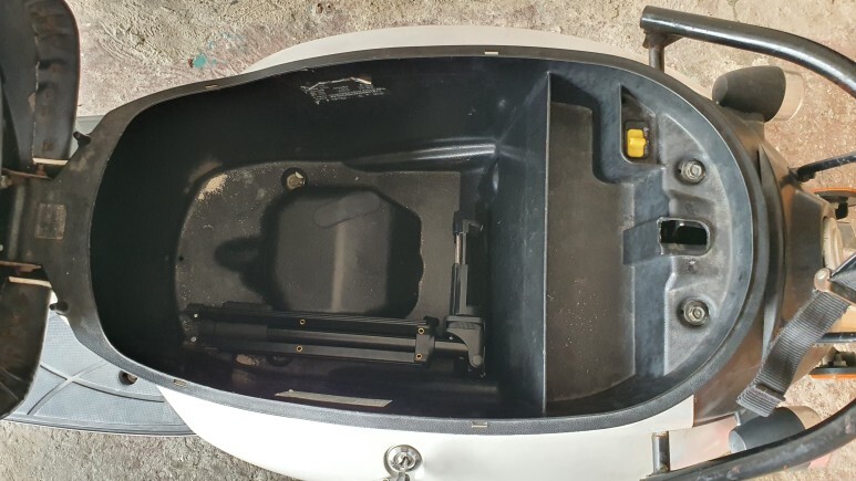 110cc 벤리는 뒤에 짐칸이 달려있다. 마치 배달의민족 오토바이마냥 뒤에 검은색 박스가 달려있다. 하지만...50cc 짜리는 체급이 작은지라 짐박스가 달려있지 않다... 유일한 짐칸은..! 안장?이라고하나... 안장을 열면 나오는 헬멧 하나 들어가는 협소한 공간...!