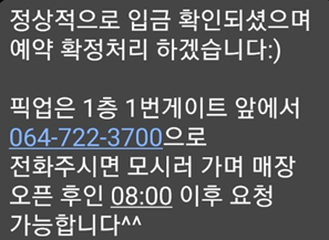 머 이것저것 예약에 필요한 정보들을 설명해주고...일단 다 안 읽었다.... 픽업되는지도 지금알았네... 버스타고 갔는데 ㅠㅠ... 회사 있을 때 연락온지라 걍 계좌번호에 바로 돈만 입금하고 끊었다 ㅋㅋ..