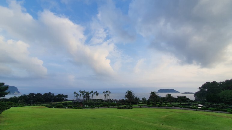 녹차동굴에 나와서 다음 목적지는 칼호텔 정원이었다. 이거 머 서귀포 갈만한 곳 없나 찾아봤는데 이런데가 있어서 오 처음보는 곳인데 괜찮아 보여서 가보기로 했다. 다만 녹차동굴에 나와서 곧 해가 질 무렵이었기 때문에 좀 서둘러서 이동했다.