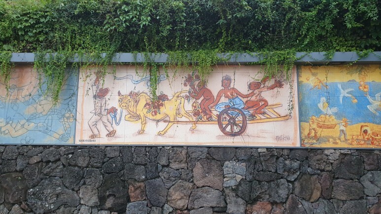 벽마다 이중섭씨+제주도 콜라보한 그림들이 그려져 있다.