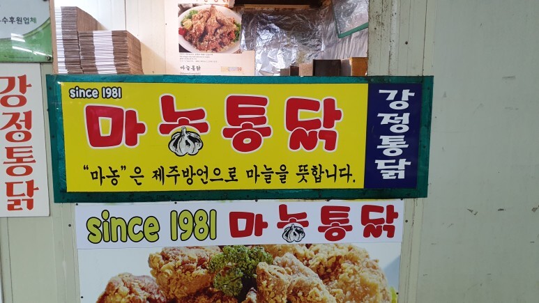 마농통닭... 친구가 이거 먹으라고 계속 마농통닭 타령을 했었는데 진짜 길가다 발견했다. 물론 먹지는 않았다.